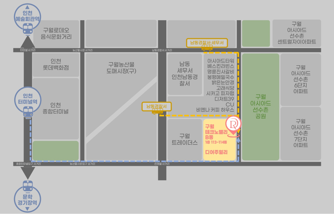 인천터미널역 3번출구 나와서 약 10분 도보