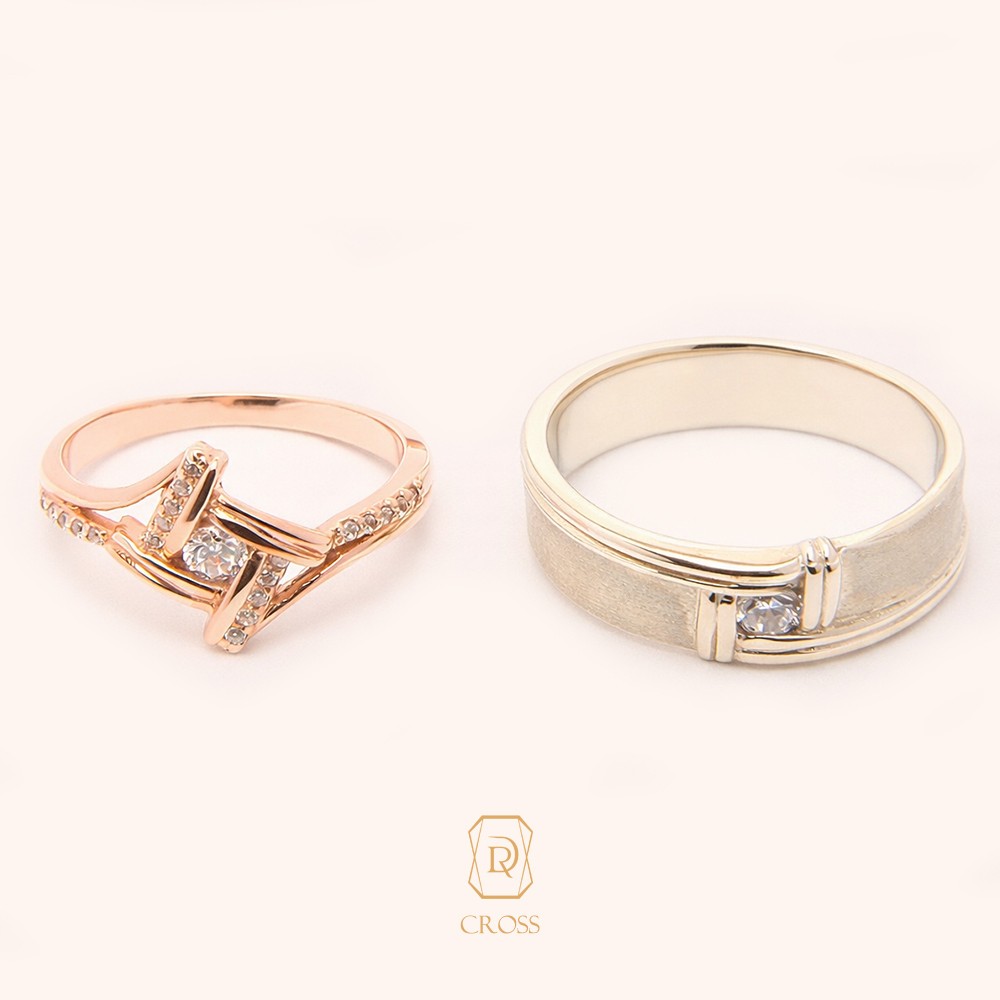 디자인의 핵심인 엇갈린 밴드 라인은 각자의 삶을 충실히 살아온 두 사람의 지난 시간을 상징합니다. 하나는 매끄럽고 단단한 금속 본연의 결을 살려 강인함을 표현했고, 다른 하나는 섬세한 다이아몬드 세팅을 통해 찬란하게 빛나는 생의 환희를 담았습니다. 이 서로 다른 두 개의 선이 중앙에서 교차하며 만들어내는 ‘X’자 실루엣은, 이제 더 이상 혼자가 아닌 ‘우리’라는 이름으로 묶인 견고한 결속을 의미합니다.
